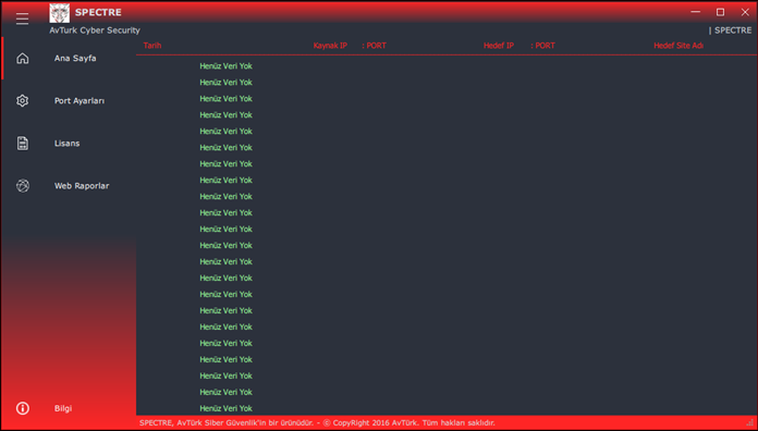 Kurulumu ve kullanımı oldukça sade tasarlanmış olan SPECTRE, akıcı ve işlevsel arayüzü ile her geçen gün kendini geliştirerek hizmet vermeye devam edecektir.